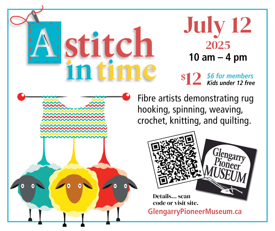 DUNVEGAN, ON — July 12, 2025 – If you love textiles, history, or simply enjoy discovering traditional skills in a hands-on way, mark your calendar for A Stitch In Time, a full-day celebration happening Saturday, July 12, from 10:00 a.m. to 4:00 p.m. at the Glengarry Pioneer Museum.