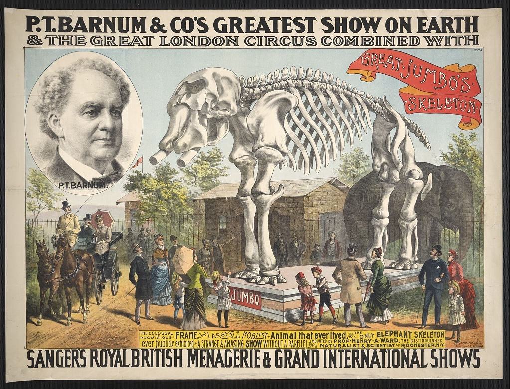 Still searching for new ways to make money by dazzling the public, he started promoting circuses in his 60’s, where he introduced Jumbo the Elephant to the world.