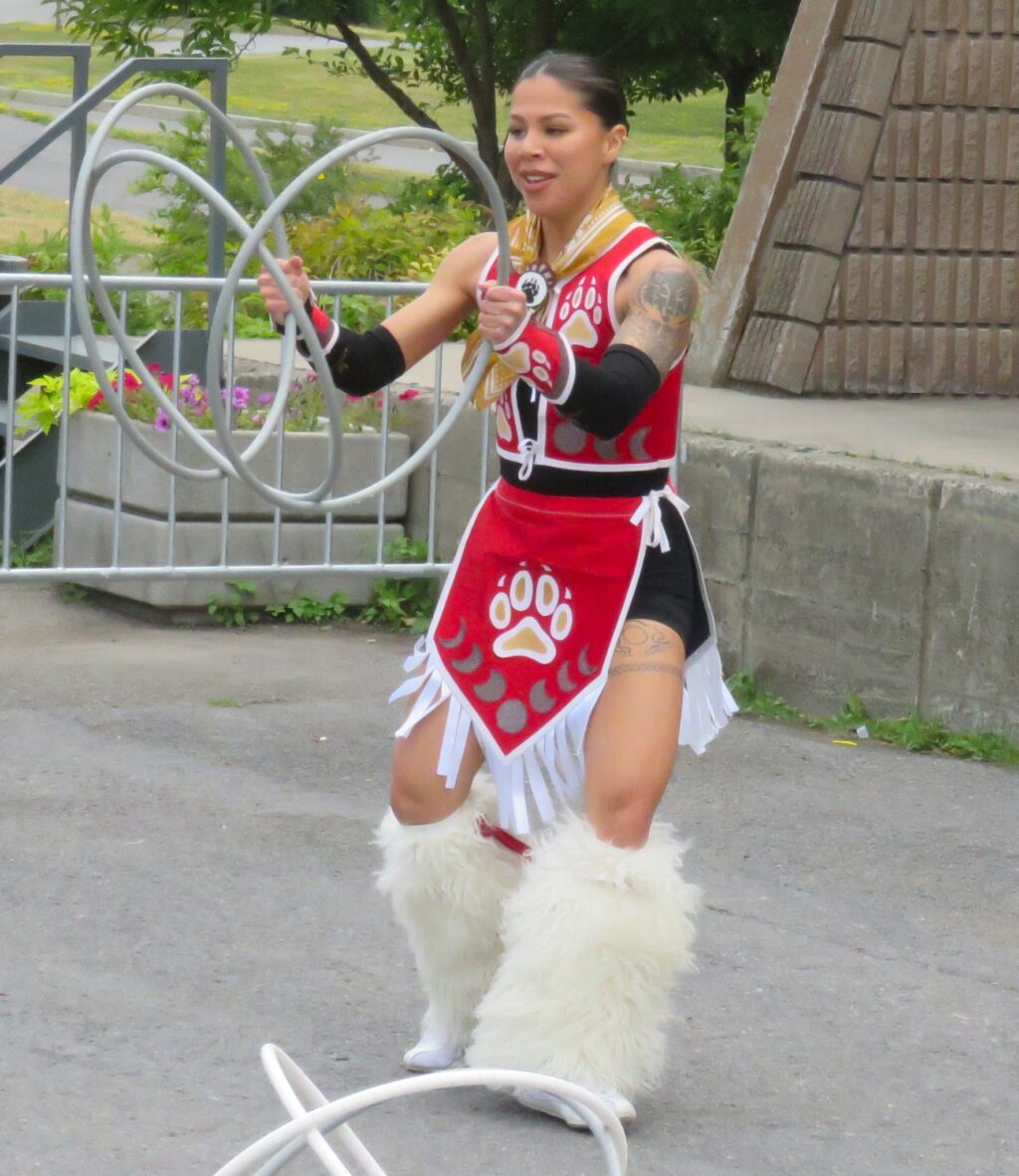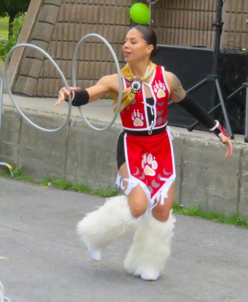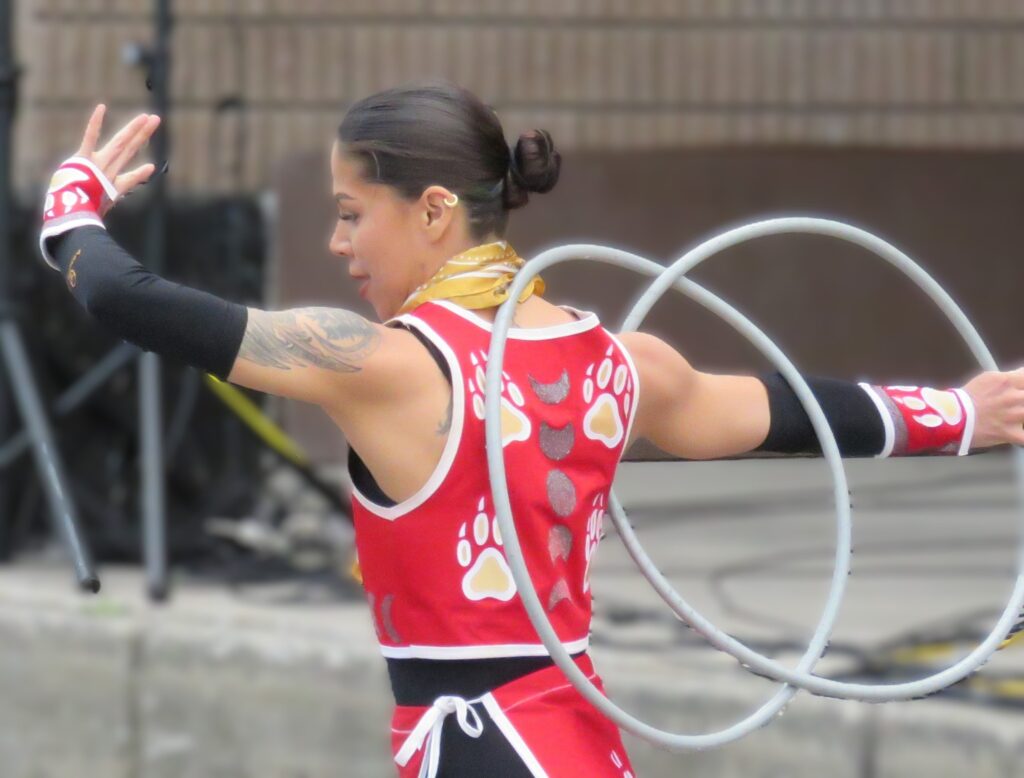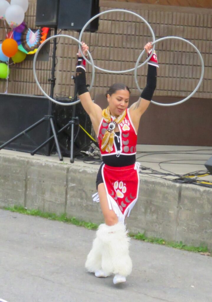 First on scene was Feryn King, an international hoop dancer. Prior to her performance she introduced the audience to the Skyworld story, an interpretation of the cycles of life and the relationship between humans and nature. She explained that hoop dancing symbolizes these cycles and invited the public not to just watch the dance but to feel the music.