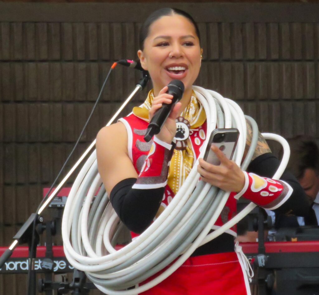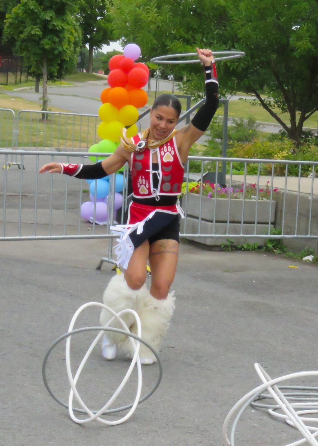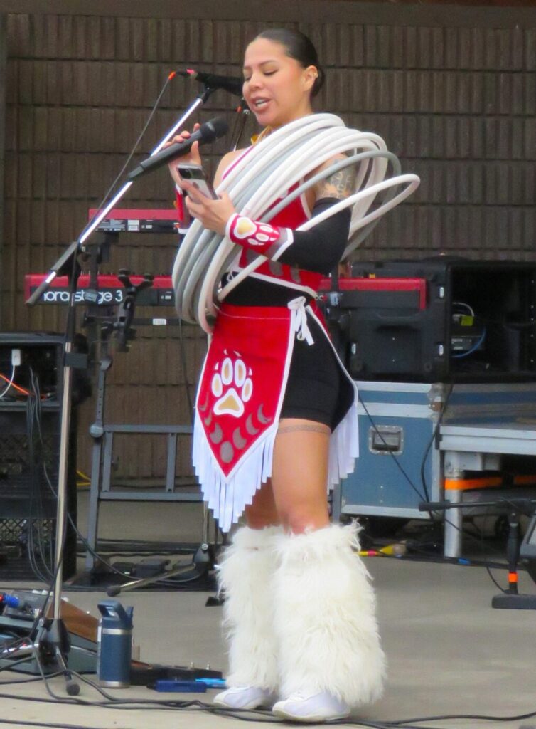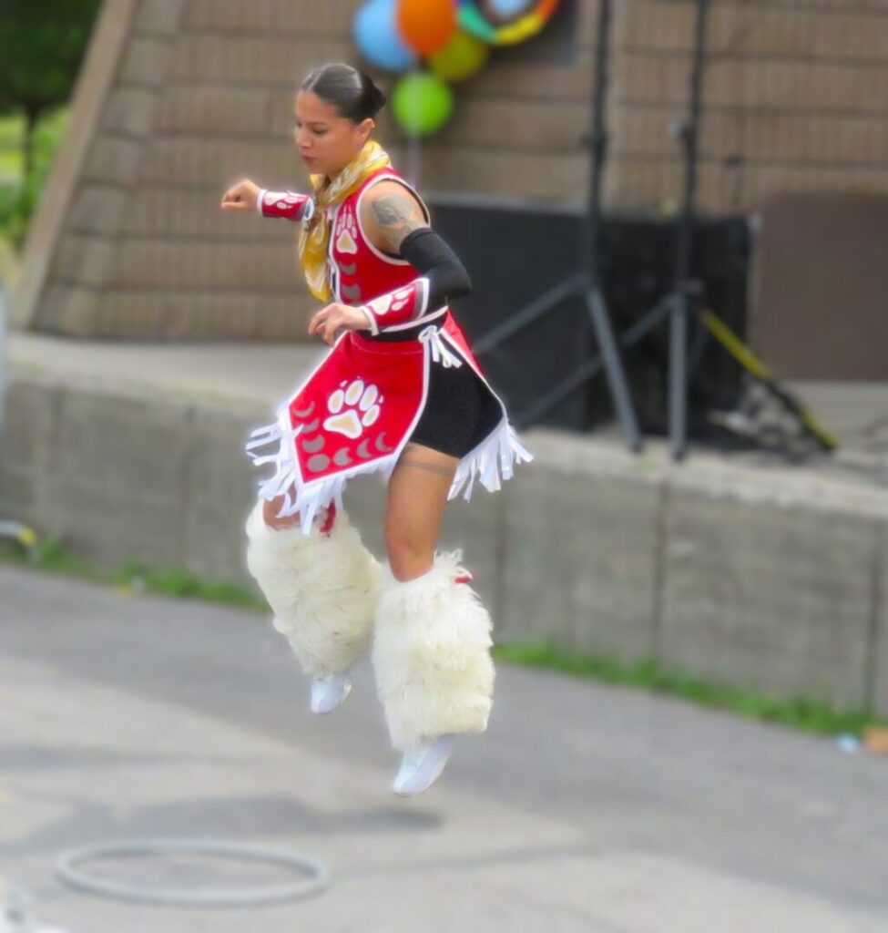First on scene was Feryn King, an international hoop dancer. Prior to her performance she introduced the audience to the Skyworld story, an interpretation of the cycles of life and the relationship between humans and nature. She explained that hoop dancing symbolizes these cycles and invited the public not to just watch the dance but to feel the music.