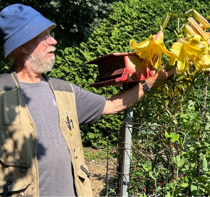 Tony McCadden is one of the 14 people who grew some of the seedling for this year’s plant give away, something he has been doing for the past five years. When I went to talk with Tony at his home in Morrisburg, as we drove up to his home, it was easy to spot his place where his front yard, on a regular sized property, was overflowing with every variety of plants and beautiful flowers. Not a blade of grass in sight! The soothing sound of water from a small stone fountain by the front made it feel as if I had stepped into a magical kingdom.
