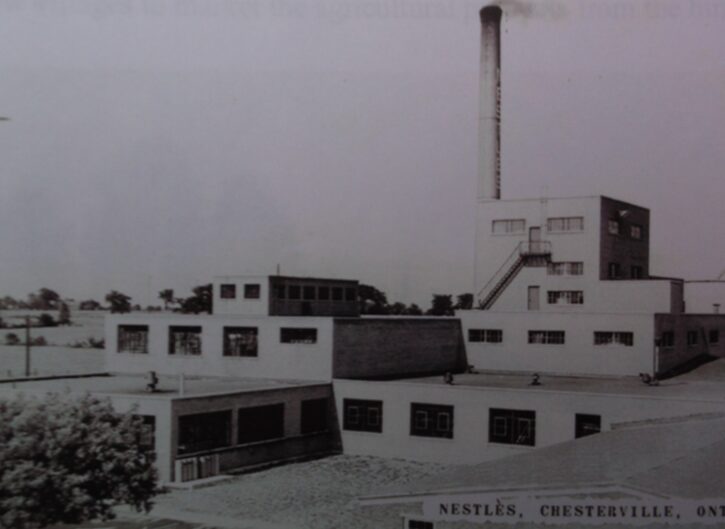 In Chesterville, farmers’ reacted by forming their own facility to produce condensed milk. Historian O.D. Casselman, and condensery owner wrote, that the village’s first refrigeration plant, necessary for the production of condensed milk, started as a farmers’ cooperative, as a direct result of the tariffs, just north of the railway tracks, between 1893 and 1900, on land that would one-day be the home of Nestle Canada.