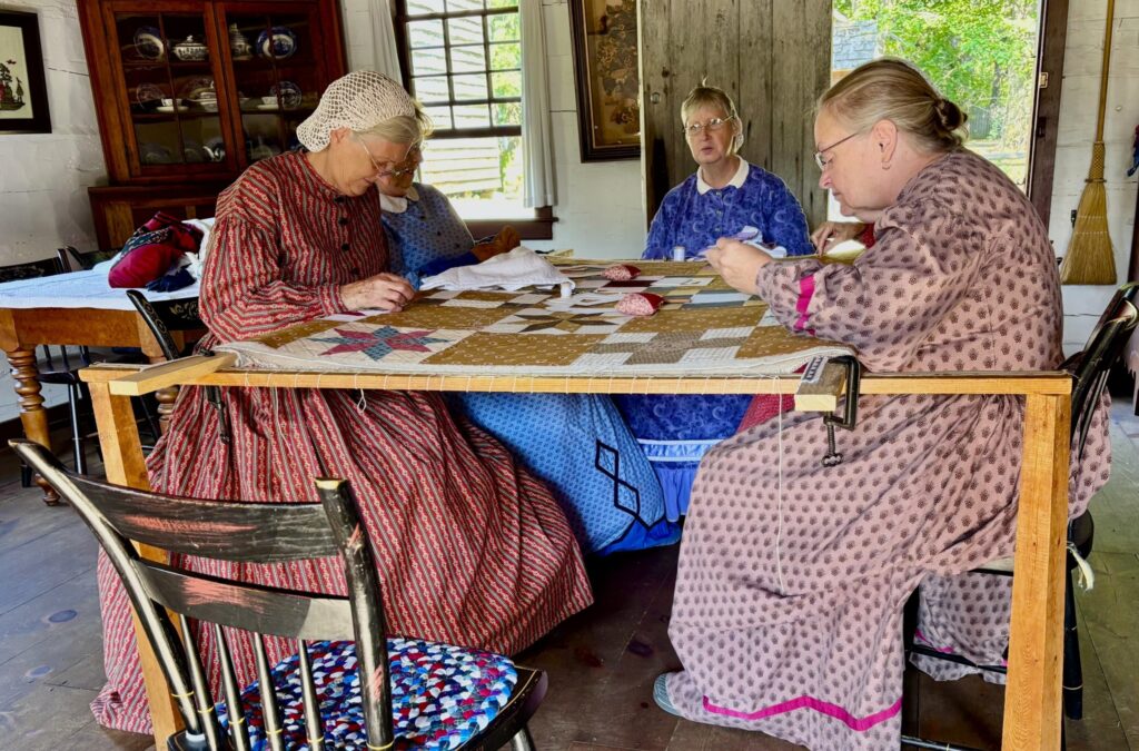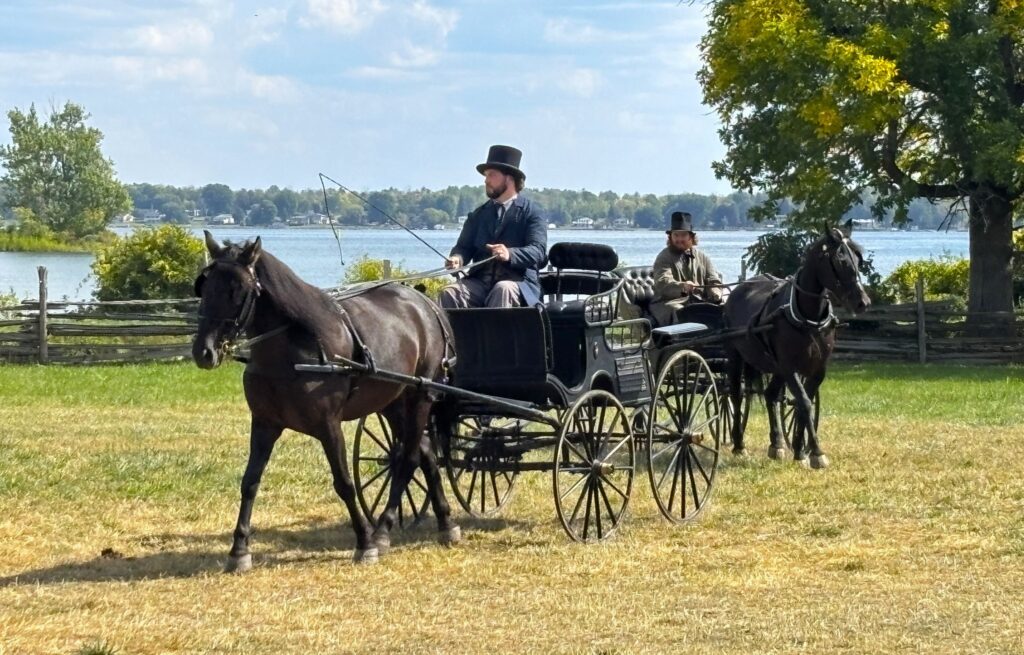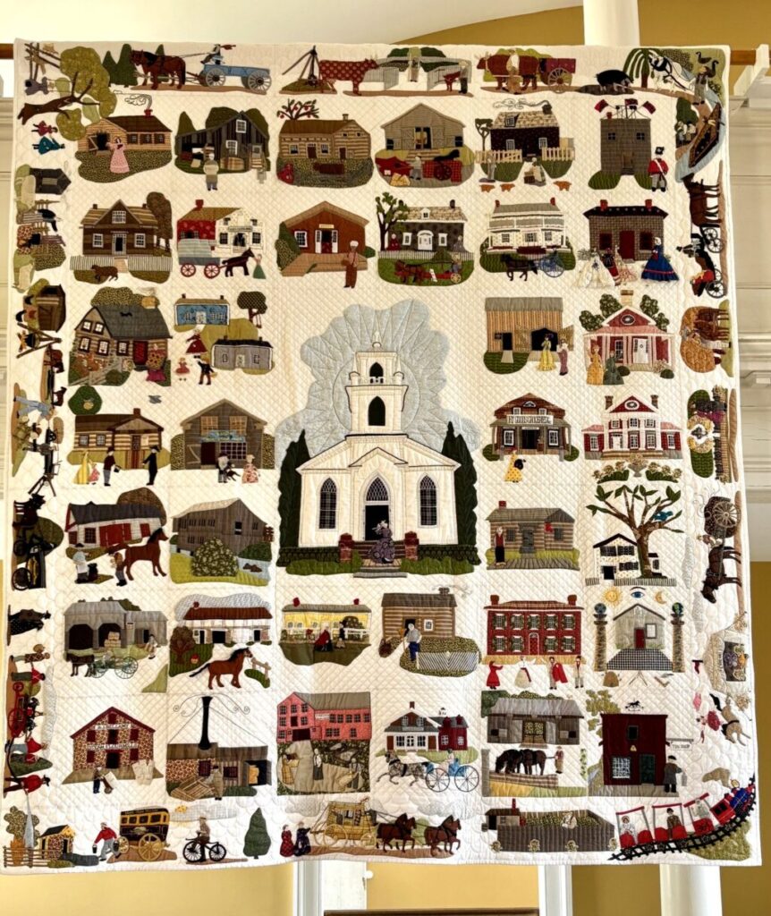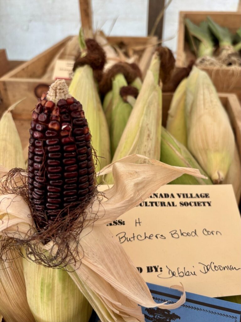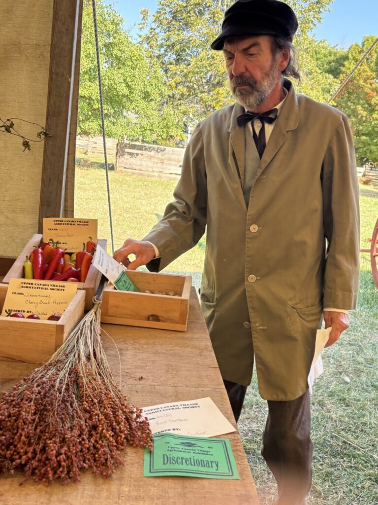 Today, September 14th, I attended the Fall Fair at Upper Canada Village, on the last day of the UCV’s season. I visited exhibits under the great tent which displayed agricultural products, preserves and pies, judged fine art, and much more. I visited the Ross House where a quilting bee was in progress and then attended the Quilt Show where the quilts made by villagers during the summer months were displayed. I was particularly awed by the amount of detail in 60th Anniversary quilt which took nearly six summers to complete.