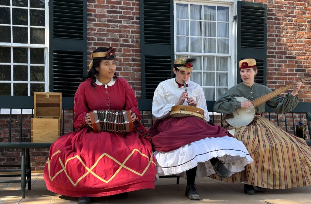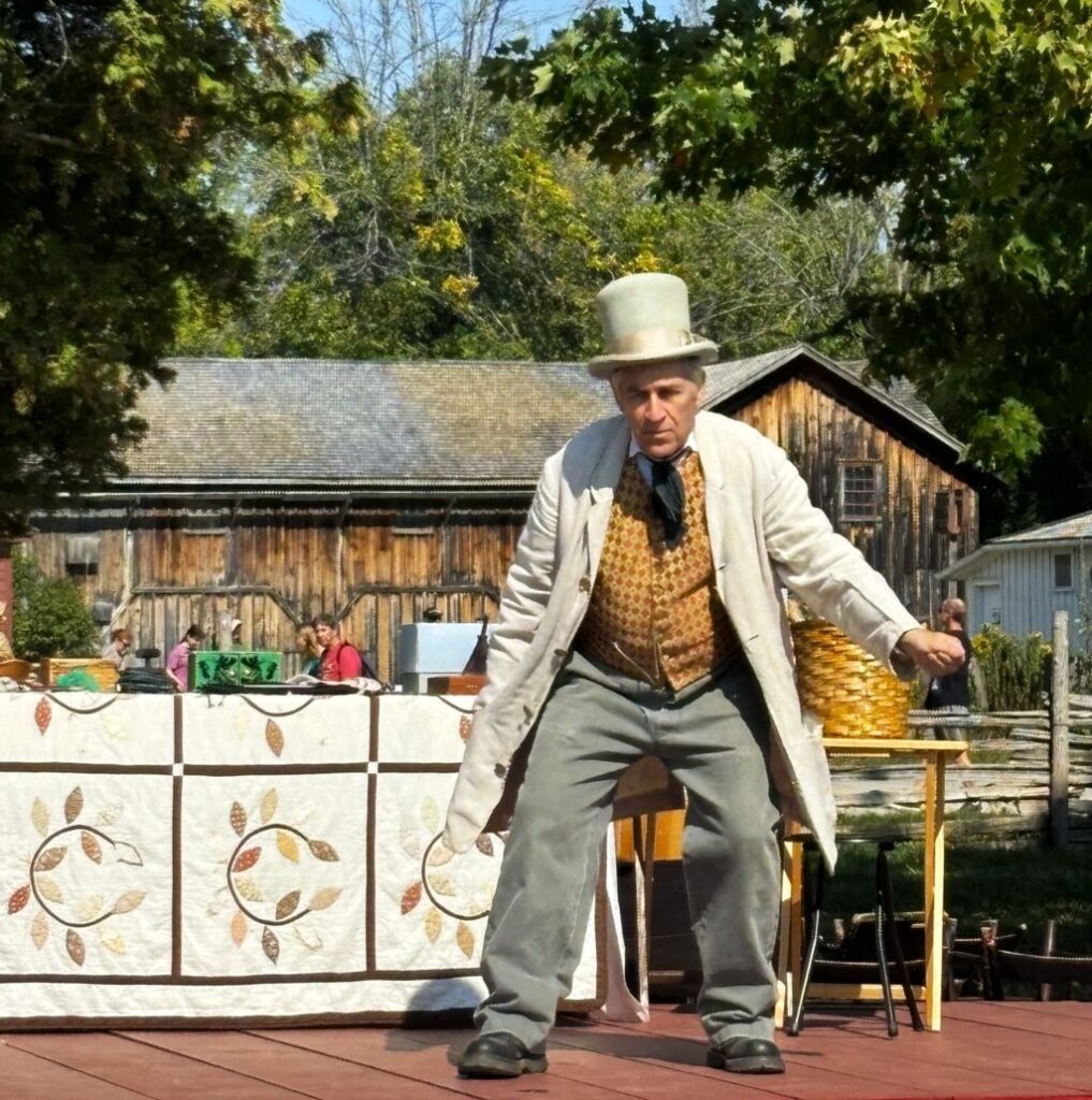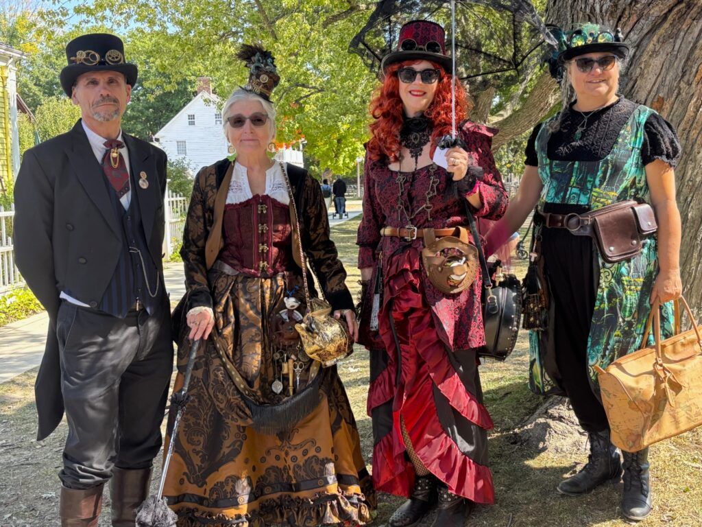 On the steps of Cook’s Tavern, which served as a stage, three young women entertained the public with lively music and songs of the village period. It was also here that I came across four visitors dressed unlike the other villagers, in elaborate Victorian era clothing. They explained that they were Steampunk performers from the Gatineau area. From what I deduced “steampunk” is a term for reimagined history – actual history mixed with a futuristic element. This added a surprise element to the day for sure.