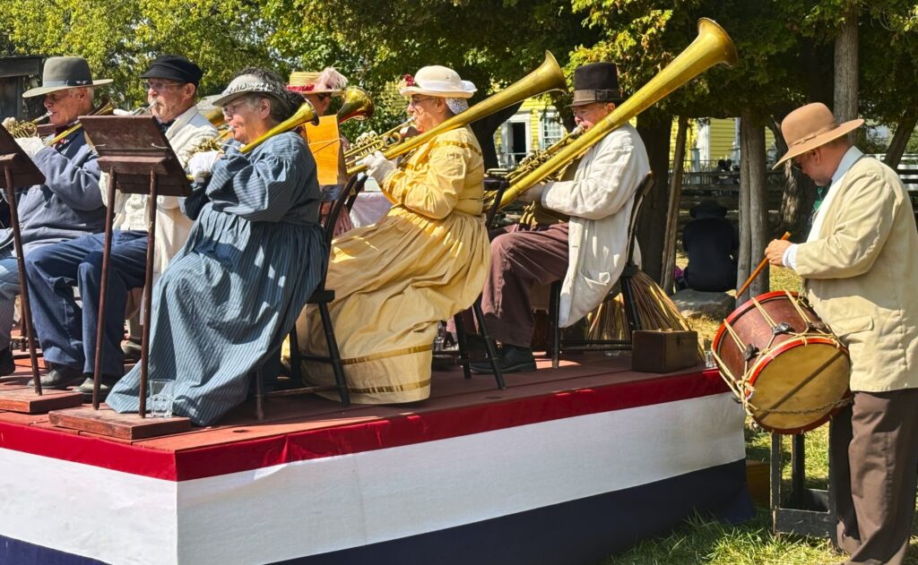 Across the road on the fairgrounds, Magician Steve Baker, who I would also qualify as “Comedian”, did a fine job amusing the audience. Afterwards, from the shade, I listened to the address of the President of the village’s Agricultural Society and then the brass band.