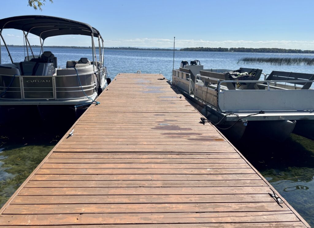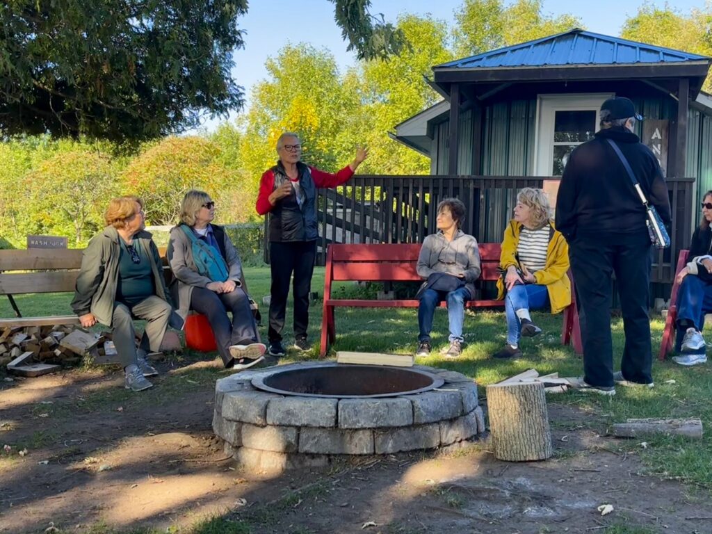I boarded a pontoon with a dozen others at Warden’s Marina and enjoyed a short cruise on the St. Lawrence River to the Island. When we arrived, we were greeted by Marie Thompson and offered breakfast with a large array of choices to start our day. While the second shuttle of participants were enjoying their own breakfasts we were permitted to tour the property, camp cabins, and yurt.