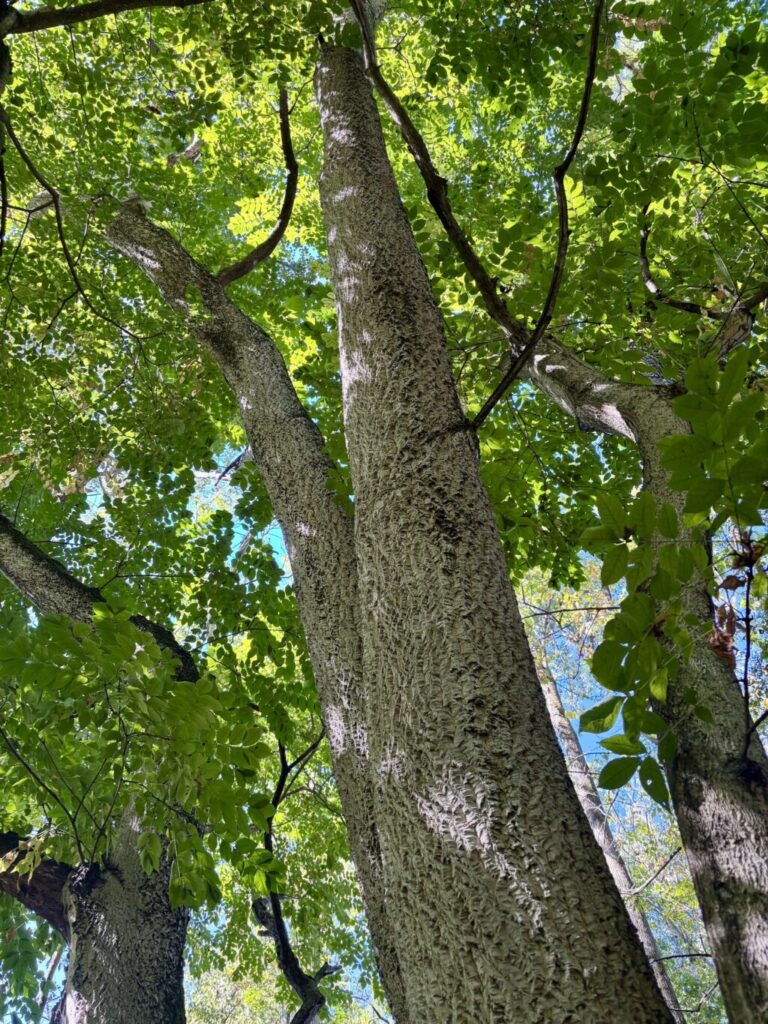 We had free time after lunch, and a few of us decided to hike a trail loop. I had learned earlier from Arnold, one of the staff, that one of the original lessees on the island, James Cameron, had once had a farm there and had planted a couple of Cork Trees. These trees are non-native, usually growing in Europe or Africa, and I had never seen one. “You will know it when you see them,” he said. He was right. He also told me that the island is on the bird migratory route and that just last week he had seen hundreds of hummingbirds. Oh, what a sight that must have been! We had time for a second hike and were directed to a shorter trail with a sweat lodge and a view of the bay.