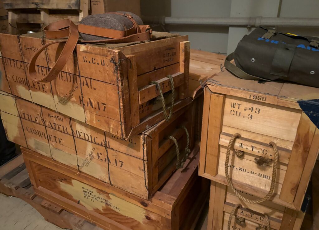 In 1997, after the Post Office had relocated, the Cornwall Public Library moved into its current location 45 Second Street East, but the history doesn’t stop there. The plot of land where the library sits was once the home of the Cornwall Orphanage. A fire in 1950 destroyed the building, but fortunately no one was hurt. The Federal Government then acquired the land in 1953 and built a Post Office. With World War II in the not-so-distant past, the government was preparing for the worst. As such, the basement of the building was designated as a safe space for the Prime Minister in the event of anything happening on Parliament Hill. In an emergency, he would have been able to run the country from this Cornwall basement. It was built so that 100 people could stay there for 120 days without ever having to leave the building. It housed a full kitchen, a full gymnasium, a dormitory with bunk beds, and a communication room. In fact, during our visit we saw boxes and crates containing such emergency items as wool blankets, first aid kits, and water canteens left there by the Department of National Defence in the 1950’s which have yet to be retrieved.