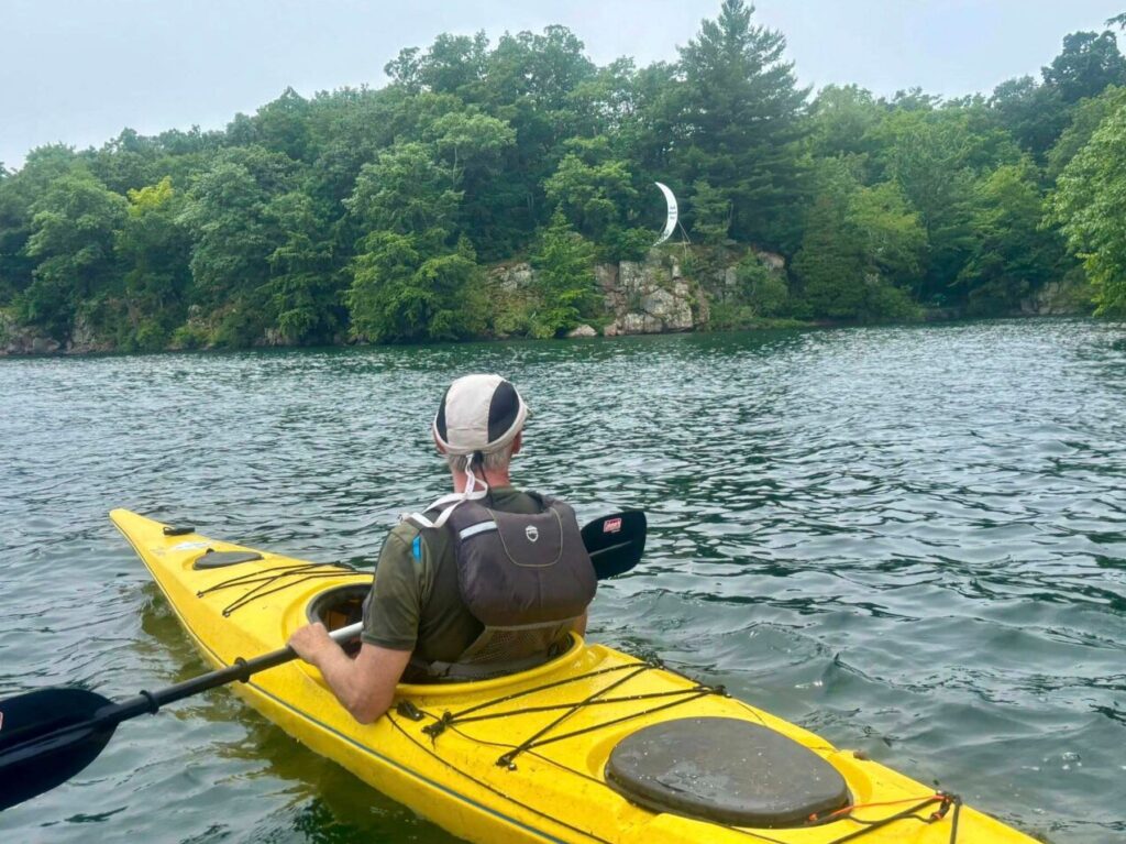 On Day Two, our plan is to paddle to Twarthway Island, a hidden gem I am eager to revisit for its charming sandy bay. I am so looking forward to a refreshing swim! A six-kilometres paddle is required, some of it through unsheltered open water. It is windy and the crossing is rough, so rough that we decide to abandon our plans. I am disappointed but I get over it quickly. Safety must come first. We paddle to the shelter of an island and make our way back zigzagging through several more, exploring each one’s uniqueness. We encounter a bevy of Mute Swans swimming gracefully to our left, a small consolation prize for the ditched beach.