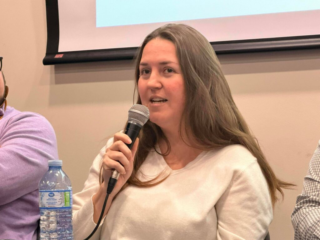 Liz Quenville spoke about the needs of the 2SLGBTQplus community and what meaningful allyship looks like. She emphasized that the people most affected must be included in every decision making process. She also stressed that rights are meaningless if basic needs such as housing, healthcare and safety are not met.