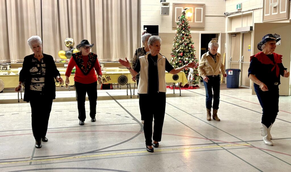 The western-themed evening proceeded with a potluck supper of delicious salads, appetizers, warm comfort foods, and sweets followed by a few “chansons à répondre” to get into the festive spirit. The evening continued with social and line dancing led by Claire Lemieux and interspersed with entertaining games.
