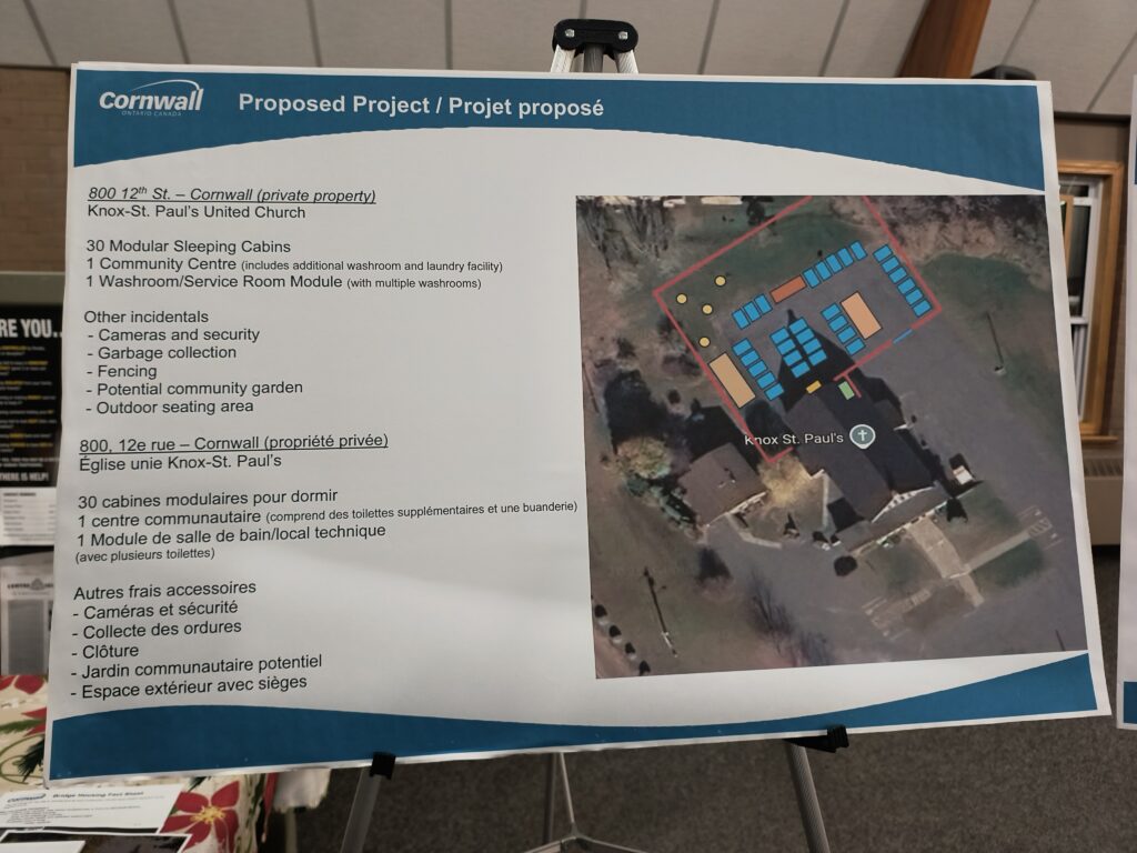 Cornwall’s Mayor Towndale spoke at this event as did Melodie Lemoeligou, Board Chair, Knox St. Paul Church who said, in so many words, that the Church has been working with the City of Cornwall to offer a space for this venture as the mission of the church is “to help people” and having sat down with City officials to discuss their concerns, a lot of which mirrored those concerns of the public at this open house, the church board felt that this will be a safe area in which the church can fulfill their mission of helping people.