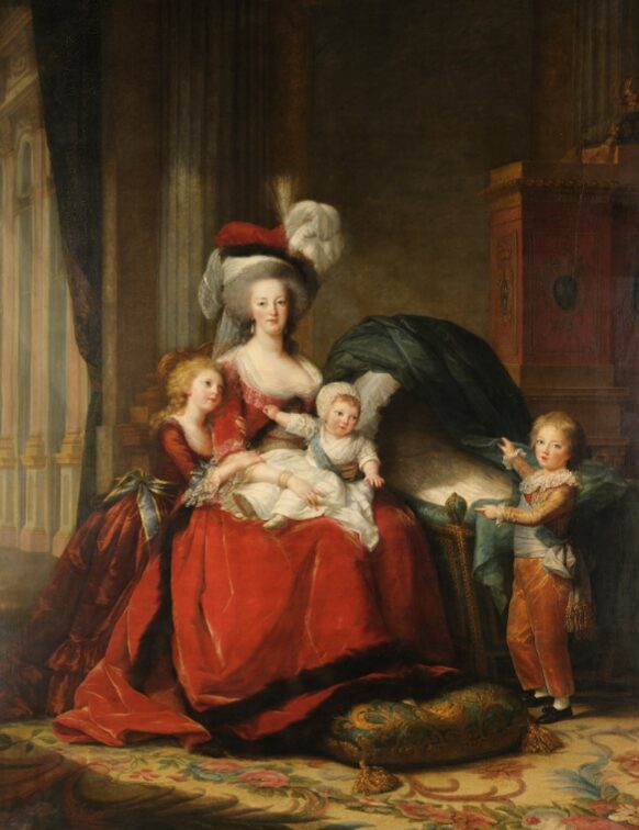 The famous Marie Antoinette family portrait by Élisabeth Vigée le Brun has been known as a treasure in France. It is a symbol of Queen Marie Antoinette’s motherhood during a time when her reputation was on the decline and after the loss of a child, symbolically presented by the empty bassinet.